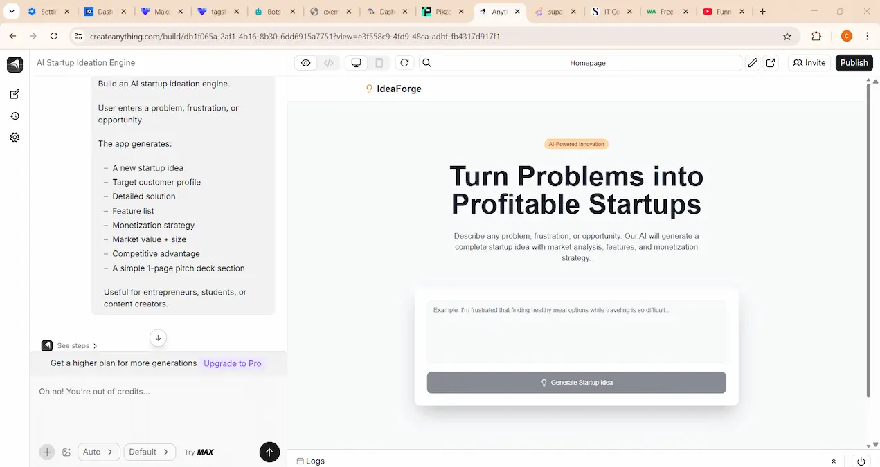 CreateAnything / Pikzels → I generate quick visuals, ads, thumbnails, and design variations for social media.